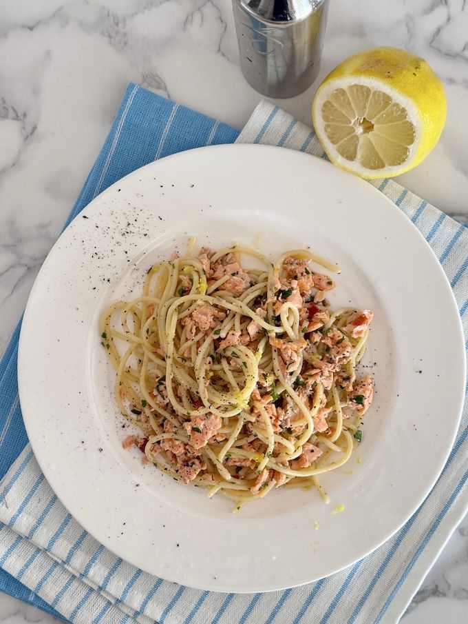Gli spaghetti al salmone senza panna sono un piatto che preparo spesso anche in famiglia: piacciono molto alle mie figlie, grandi amanti del salmone. È una di quelle ricette che mette tutti d’accordo, perché unisce semplicità e gusto.