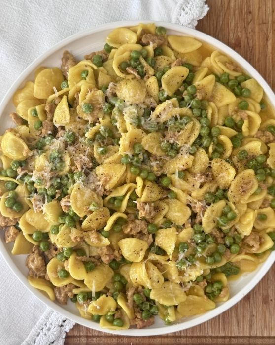 Le orecchiette, salsiccia e piselli allo...