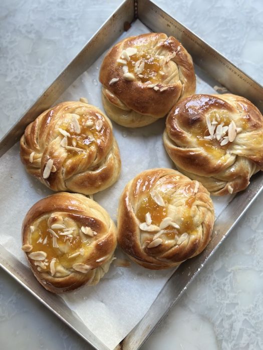 Con un semplice impasto lievitato dolce si possono preparare meraviglie facili e buonissime come questi intrecci soffici alle pesche che ho fatto...